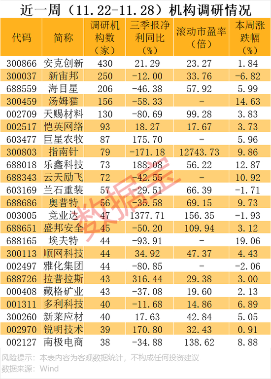 近一周机构调研个股数量有360多只,安克创新成为调研机构数量最多的股票。