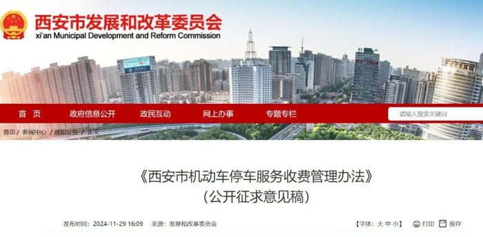 《西安市机动车停车服务收费管理办法》(公开征求意见稿)