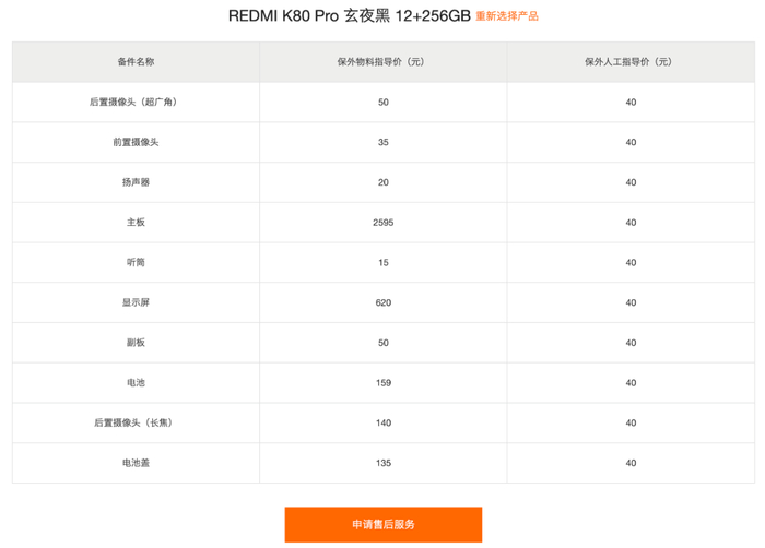本周三晚上,红米发布了品牌标识焕新后的首个产品:REDMI K80系列(K80和K80 Pro两款新机),当晚发布即开售,随着上市官网也更新了新机的维修备件价格,来看看如何~