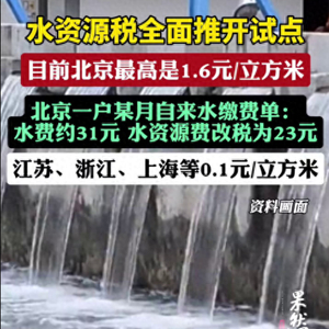 那这个税到底是怎么收的呢?据了解,这次改革设置了不同地区最低平均税额水平,北京是全国最高的,地表水水资源税最低平均税额是1.6元/立方米,地下水是4元/立方米,是地表水的2.5倍,确实高了很多。