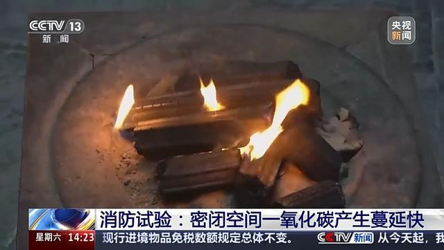 在一个大约10平方米的密闭房间内,消防员点了一盆炭火,随后关门离开。大约半小时后,消防员进入房间,检测仪器立即发出警报声,显示房间内一氧化碳的浓度已经骤升至370多ppm,远远超过安全标准。