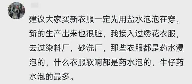 还有人建议,不管买来的是什么衣服裤子,一定要多洗多晒,然后再穿。