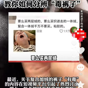 视频中讲述:“复合加绒的面料是用胶黏的,甲醛含量高,有毒,不要买”。