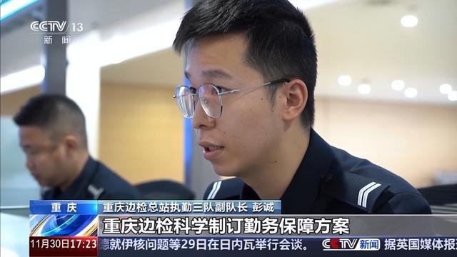重庆边检总站执勤三队副队长 彭诚:针对免签政策带来的客流增长,重庆边检科学制定勤务保障方案,提前预测航班流量,动态调整查验通道,加强旅客前巡引导,进一步优化边检查验流程,确保重庆口岸通关安全顺畅。