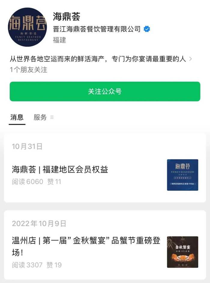 而海鼎荟官方微信公众号在2022年停更后,突然在10月31日更新了一条“福州地区会员权益”的内容。
