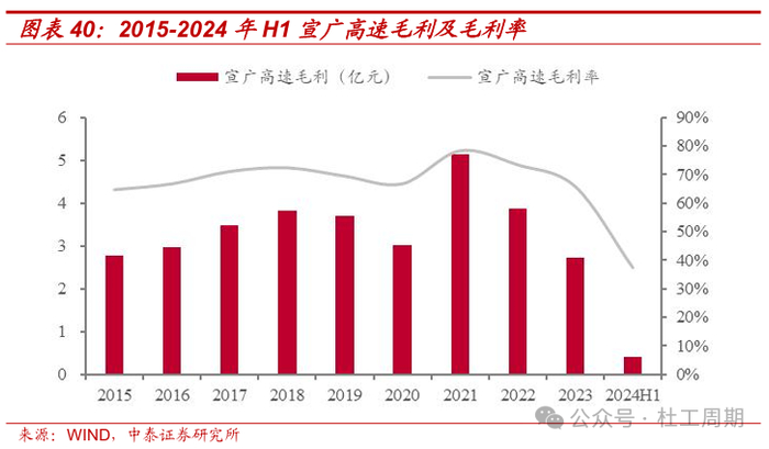 核心假设:1)受宏观经济发展、宣广改扩建等因素影响,预计2024年通行费收入小幅下滑;考虑到宣广高速改扩建完工后车流量有望迎来大幅修复, 以及经济发展向好、路网结构优化背景下公司路产盈利能力有望增强,预计2025-2026年通行费收入持续增长。整体来看,假设2024-2026年公司收 费公路业务营收增速分别为-4%、15%、7%。2)考虑到宣广高速改扩建PPP项目预计于2024年底完工,假设2025-2026年不再确认相应建造期收入/成本。3)假设2024-2026年公司毛利率分别为26.3%、58.4%、59.5%。4)假设2024-2026年公司期间费用率分别为3.4%、7.8%、7.6%。2025 年公司毛利率及期间费用率的变动预计主要受宣广改扩建工程PPP项目完 工后不再确认相应建造期收入/成本等因素影响。