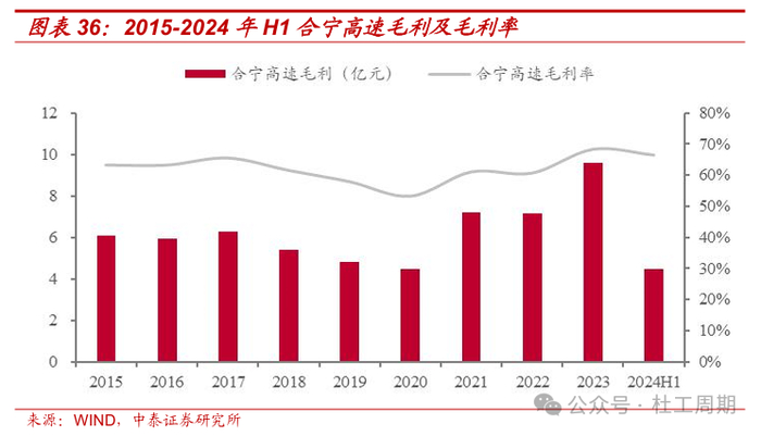 高界高速预计将进行改扩建,公司长期盈利能力有望进一步增强。高界高速也为上海至四川成都“两纵两横”国道主干线的组成部分,向东通过合安高速与公司经营的合宁高速公路相连,向西连接武汉、重庆、成都等城市,为连接中西部地区与东南沿海地区的重要干线公路。2015-2023年,高界高速折算全程日均车流量稳步增长,毛利率保持较高水平,资产质量较好。2024年前三季度,高界高速折算全程日均车流量为25483架次,同比下降约13%;通行费收入(含税)为6.15亿元,同比下降约14%。根据公司公告,高界高速预计将进行改扩建,目前已启动前期研究申报阶段。若高界高速改扩建项目顺利开展并完工,则其收费期限有望进一步延长,同时将进一步增强公司核心路产的长期盈利能力。