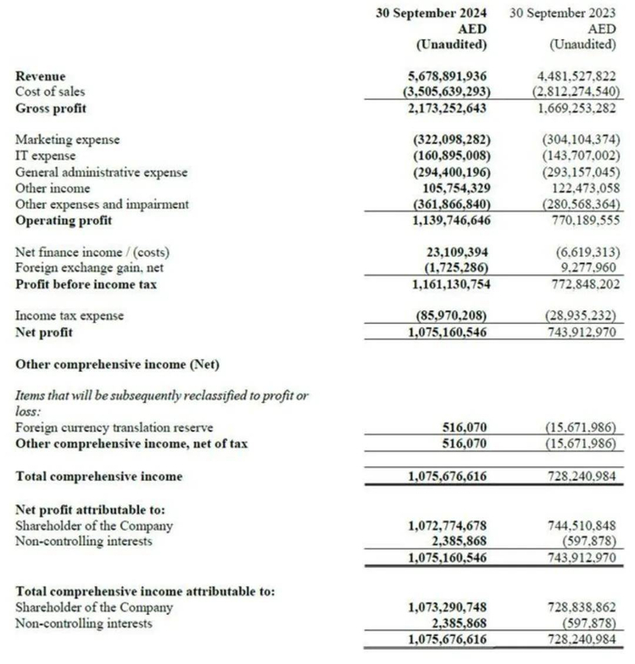 Talabat的招股书显示,公司在2023年实现了61.63亿迪拉姆(约16.78亿美元)的营收,同比增长21.5%;净利润为10.84亿迪拉姆(约2.95亿美元),同比增长41%。而在2024年前9个月,Talabat的营收更是达到了56.79亿迪拉姆(约15.46亿美元),同比增长26.7%;净利润为10.75亿迪拉姆(约2.93亿美元),同比增长44.7%。这些亮眼的财务数据,无疑为Talabat的上市增添了更多的光彩。