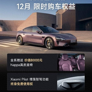 1、赠送价值8000元Nappa真皮座椅;2、小米智能驾驶增强智驾功能终身免费。