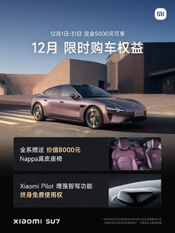 小米SU7公布限时购车权益:增强智驾终身免费送真皮座椅