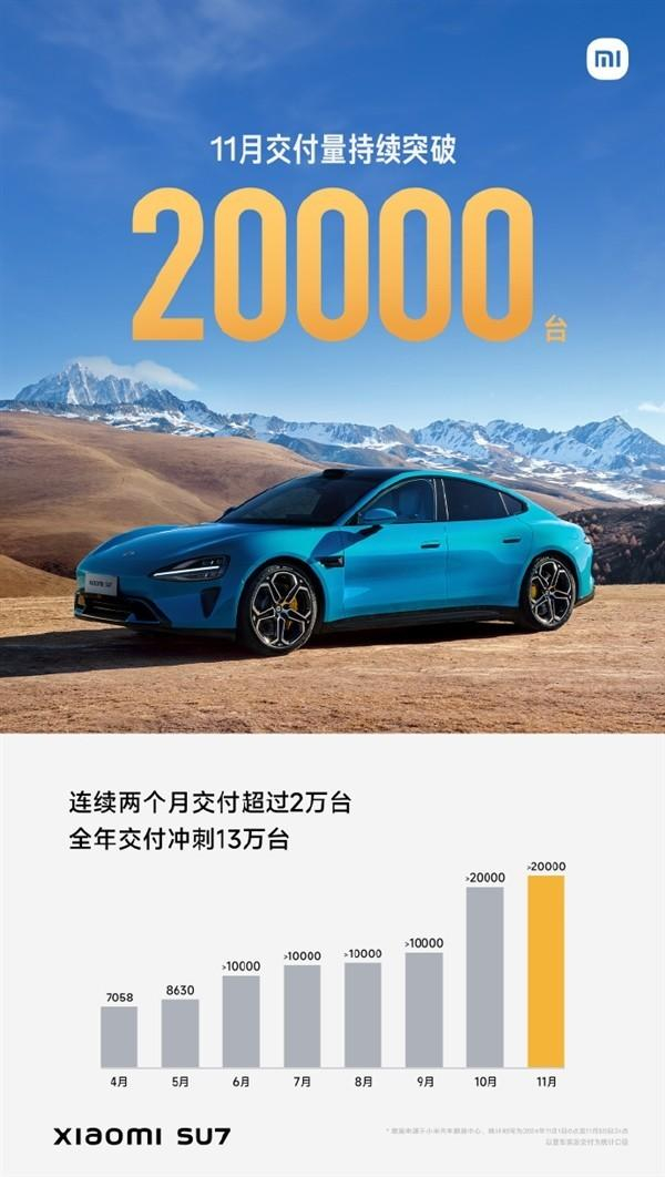 小米汽车宣布,2024年11月,小米SU7交付量继续超20000台,对达成全年超过13万台的新交付目标充满信心 。官方还公布了12月限时购车权益,12月1日至31日,下定全系可享受:
