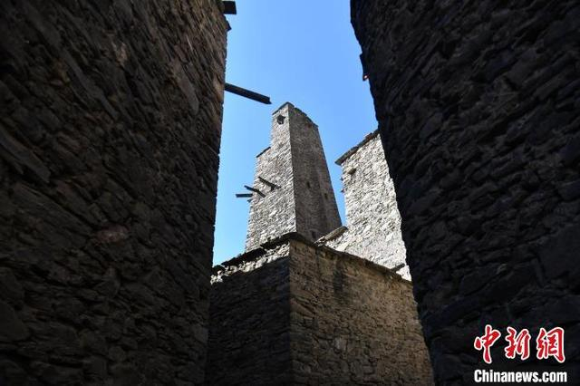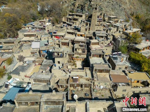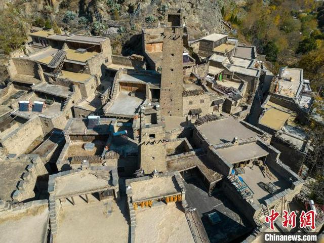 12月1日,四川理县,桃坪羌寨一角。桃坪羌寨始建于公元前111年,已有2000多年的历史,是羌族建筑群落的典型代表,寨内一片黄褐色的石屋顺陡峭的山势依坡逐坡上垒,其间碉堡林立。中新社记者 张浪 摄