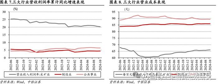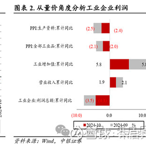 价格、成本因素共同影响工业企业盈利表现。制造业对工业企业盈利的支撑作用延续减弱。关注后续财政政策对企业盈利的呵护。