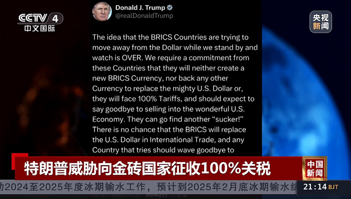 特朗普威胁向金砖国家征收100%关税!专家:加关税会让很多美国企业破产