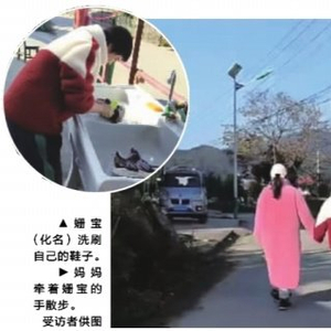 目前姗宝虽已13岁,但由于智力发育迟缓,仅有2岁左右的智力。“她在家里很乖,每一次喊我爸爸,我都感觉责任重大,总想为她做些什么。”吴先生说,姗宝生活基本能自理,会炒菜,会洗刷自己的鞋子,会看手机,不会写字但记忆力不错,认得很多小动物。