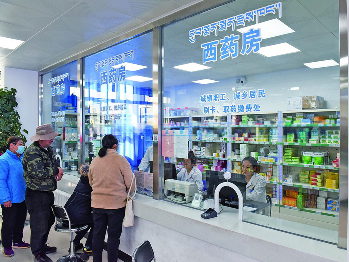 11月27日,在海南藏族自治州共和县恰卜恰镇卫生院,群众正在有序排队取药。近年来,海南州持续推进县域紧密型医共体建设,围绕“均衡布局优质医疗资源,做到一般病县解决,头疼脑热乡、村解决”的目标,优化整合县域医疗卫生资源,不断提升乡镇卫生院的医疗服务水平,缩小群众的就医半径,减轻群众的就医负担,县域医疗服务能力水平明显提升。