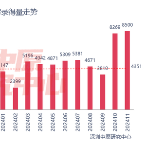 新房市场而言,乐有家研究中心监测显示,11月深圳一手住宅认购量为9986套,虽然环比下跌2成,但仍属于在10000套的高位水平波动。