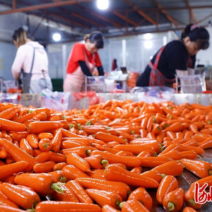 “今年收成不错,和往年几毛钱一斤的批发价相比,今年胡萝卜的批发价高了不少,每斤都超过了1块钱。”韩伯成说,他们每天至少加工100吨胡萝卜,通过冷链物流运往全国各地,还有一部分出口到国外。