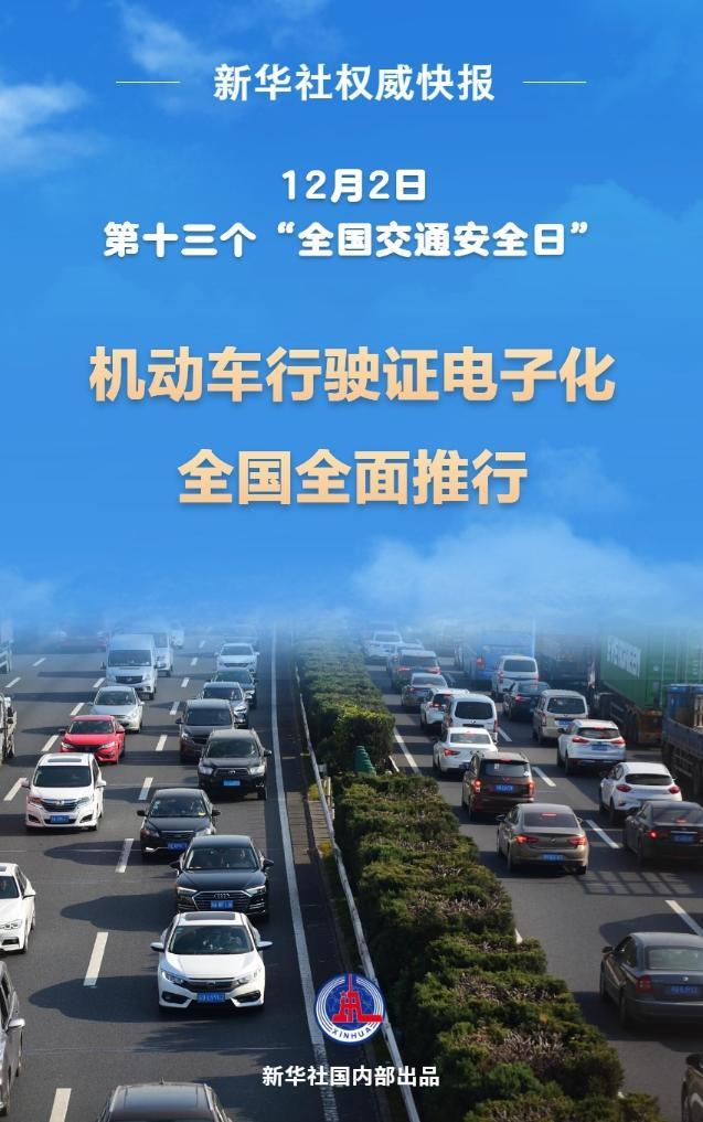 >>记者12月1日从公安部获悉,自今年12月2日起,机动车行驶证电子化在全国全面推行,全国所有车主均可通过“交管12123”APP申领电子行驶证。