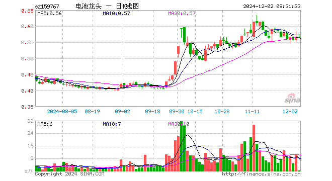 电池龙头ETF(159767)开盘涨0.00%,重仓股比亚迪涨0.65%,宁德时代跌1.00%