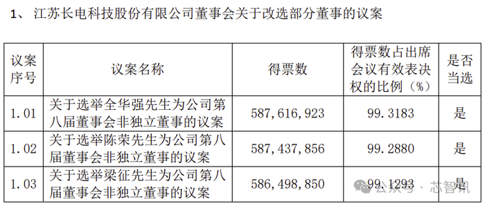 而根据长电科技11月29日发布的2024年第三次临时股东大会决议公告显示,来自华润系的全华强、陈荣、梁征均成功当选长电科技第八届董事会非独立董事。