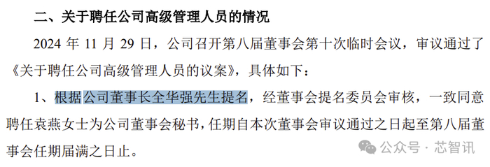 同时,另一份《江苏长电科技股份有限公司关于公司首席财务长、董事会秘书辞职暨聘任首席财务长、董事会秘书的公告》披露,全华强已出任长电科技新任董事长。
