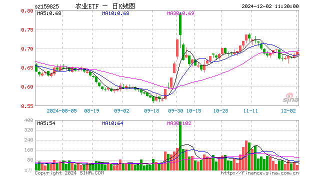 农业ETF(159825)涨0.88%,半日成交额2587.14万元