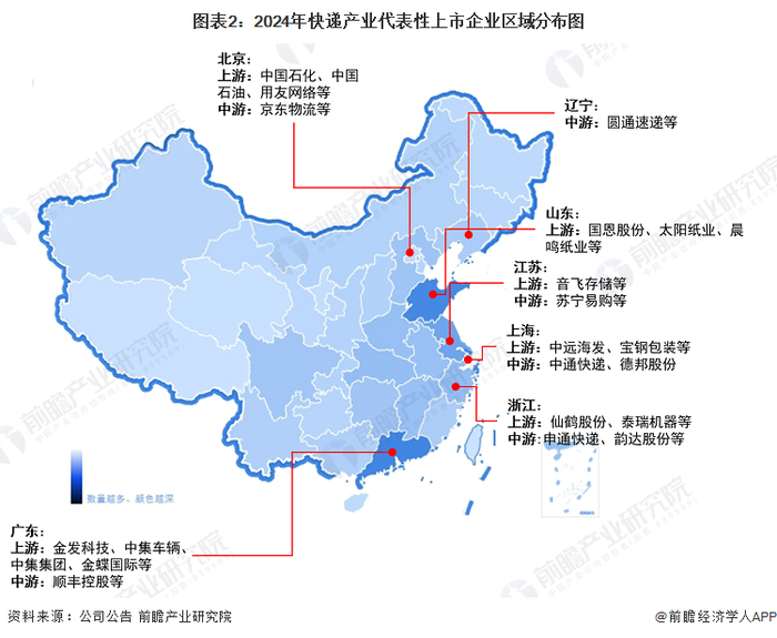 从代表性企业分布来看,上海市主要代表企业有中通快递、德邦股份等;浙江省的主要代表企业有申通快递、韵达股份等;北京市主要代表企业有京东物流等;广东省主要代表企业有顺丰控股等。