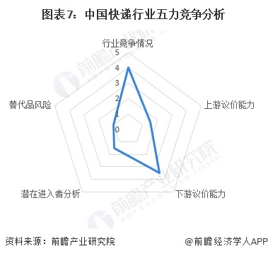根据以上分析,对各方面的竞争情况进行量化,5代表最大,0代表最小,目前我国快递行业竞争状态总结如下: