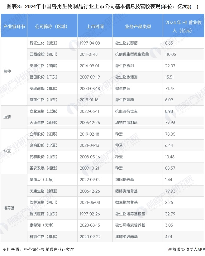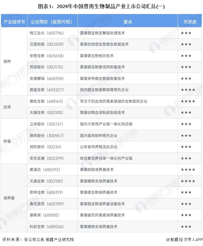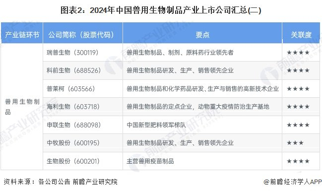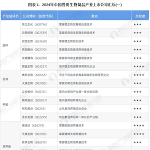 1、兽用生物制品产业上市公司汇总
