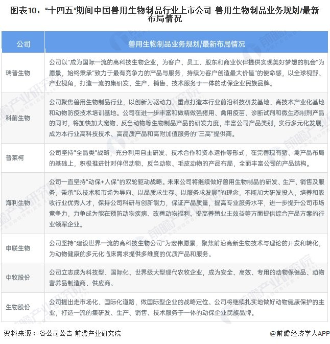 5、兽用生物制品行业上市公司兽用生物制品业务规划对比