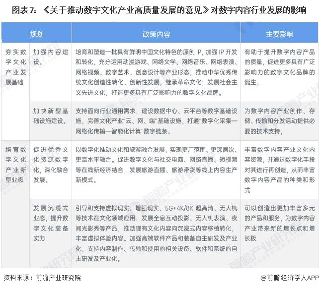 2020年11月文化和旅游部发布《关于推动数字文化产业高质量发展的意见》(以下简称《意见》)旨在通过实施文化产业数字化战略,推动数字文化产业高质量发展提出了具体的政策措施来夯实数字文化产业的基础、培育新型业态并构建良好的产业生态。《意见》提到要加强内容建设、加快新型基础设施建设、促进优秀文化资源数字化等,有利于中国数字内容产业核心竞争力的提升。