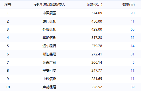 基础资产类型以优先有限合伙份额为主,该类型7只产品共计发行251.42亿元,11月企业ABS发行占比中达18%,位居第一。应收账款、租赁租金、工程尾款债权发行规模均超100亿。