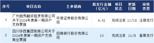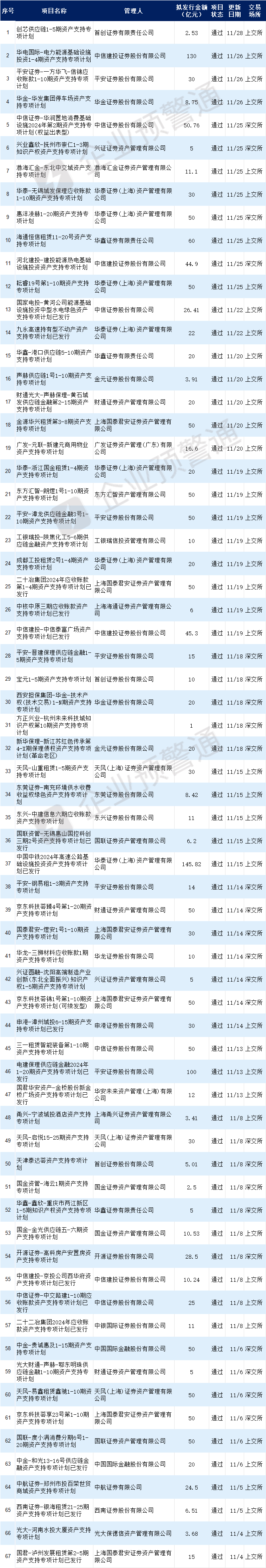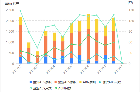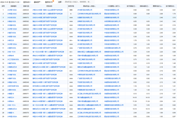 2024年11月,国内ABS市场已有132只项目备案,环比上月增加23.3%。其中备案金额超过100亿元的项目有10只。