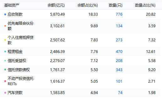按基础资产存量统计,余额超1500亿规模占比如下: