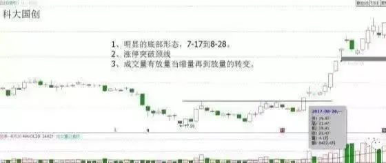 4. 成交量有放量当缩量再到放量的转变。