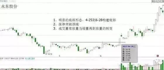 3. 涨停出现在颈线处,涨停突破颈线。