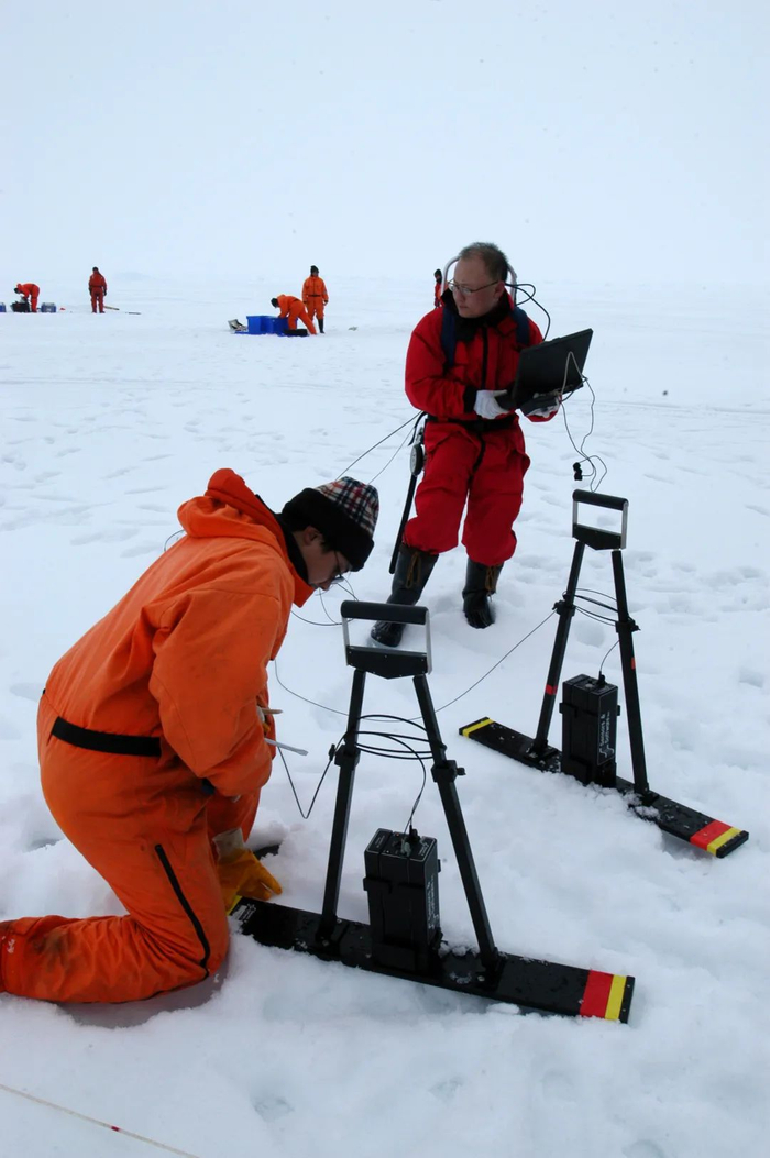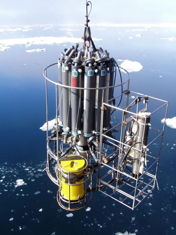 第2次北极考察中的大洋作业,队员使用MARK-IIICTD观测仪测量海水盐度等