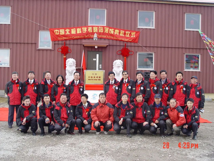 上午9时30分,《中华人民共和国国歌》奏起,身穿红色科考服的中国政府代表团成员和考察队队员在站区外几十平方米的红色地毯上,庄严地举起右手,致注目礼……时任国家主席胡锦涛发来贺信,代表党中央、国务院表示热烈祝贺!向不惧艰险、立志造福于人类的我国极地工作者表示诚挚的问候!希望我国极地科学考察事业能够为人类和平与发展的崇高事业做出新的更大的贡献。