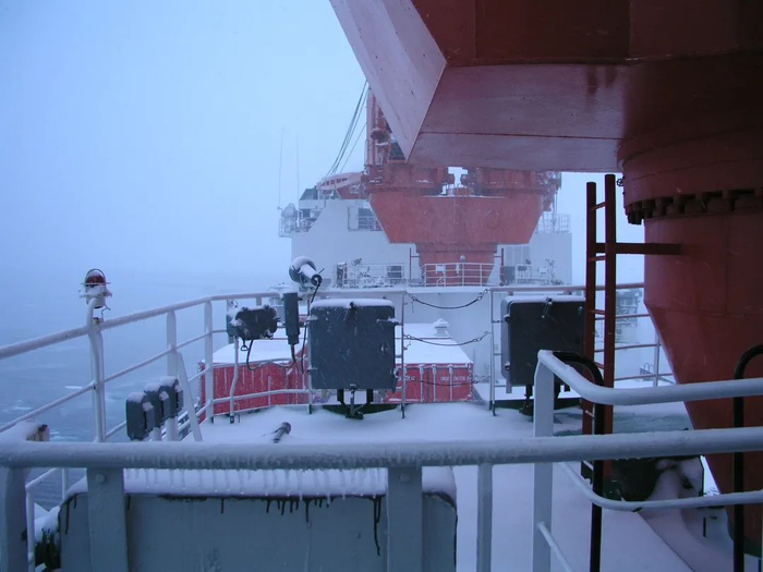 “雪龙”船经过白令海奥柳托尔斯基角,穿过白令海峡,进入楚科奇海,到达北冰洋,抵达北纬77°18′。