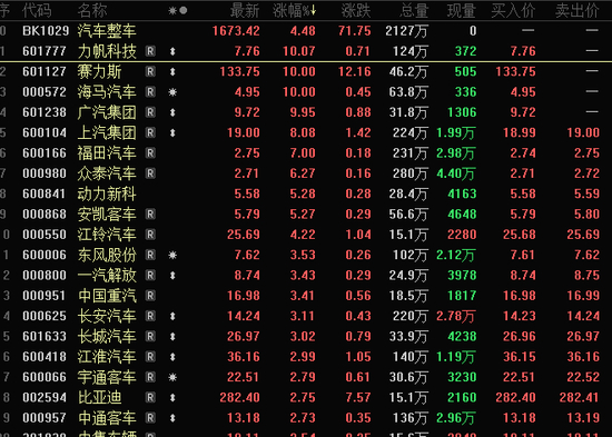 汽车板块全线上涨