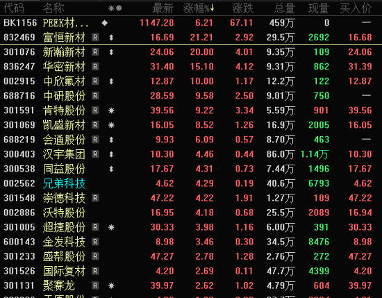 延续上周五的涨势,人形机器人继续走高,肇民科技、均普智能20%涨停,五洲新春、奋达科技、新型装备等涨停。与人形机器人相关的PEEK材料概念也大幅走高,新瀚新材20%涨停,中欣氟材、中研科技等涨停。