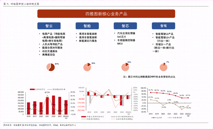 从图商转型为以科技和软件为核心的新型Tier1。公司成立之初主营业务为汽车前装导航电子地图。伴随汽车产业的变革和市场的变化,公司已坚定聚焦汽车智能化赛道,主攻以智驾为龙头,整合芯片、座舱、数据的软硬一体组合产品解决方案。战略转型期业绩端有所承压,净利润侧仍处于亏损状态。智驾产品当前营收占比低,但未来营收结构可能随公司资源向智驾业务倾斜而逐步发生变化。