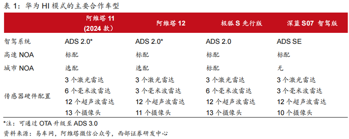 HI模式(Huawei Inside模式)是华为为车企提供的全栈智能汽车解决方案。这种模式下,华为为车企提供包括智能驾驶系统、智能座舱系统、智能网联系统等在内的全套智能汽车解决方案。但华为品牌仅以技术供应商的身份出现,而不直接参与车辆的销售和品牌运营。当前HI模式主要合作的车型包括阿维塔系列、极狐阿尔法S及长安深蓝S07。