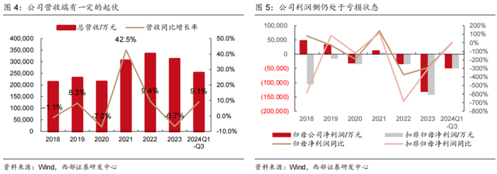 营收端有一定的起伏,24年前三季度回到正增长轨道,而利润侧仍处于亏损状态。
