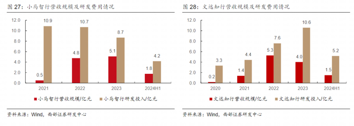 自动驾驶初创公司普遍面临大额亏损。尽管自动驾驶技术前景广阔,但目前市场上的产品大多仍处于测试或小规模商用阶段,尚未实现大规模的市场普及和盈利。但,自动驾驶技术端仍在不断的变化和演进,加之激烈的市场竞争环境,企业必须在软硬件层面持续保持研发投入,才能够维持业务的运转及自身竞争优势。以头部的自动驾驶初创公司小马智行及文远知行为例,其营收规模和研发费用之间仍然存在较大的差距,未来几年在Robotaxi等业务进展尚不明朗及竞争格局仍未清晰的背景下,可能仍然将面临着较大规模的亏损。因此,在投融资环境相较之前显著偏紧,同时初创公司现金流持续承压的背景下,我们判断自动驾驶领域的并购可能会加速发生。