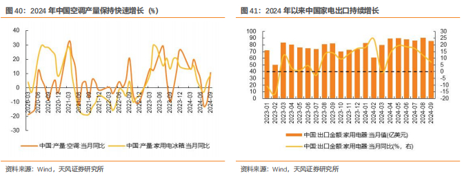 新一轮“以旧换新”+出口景气共振,2024年家电需求有望持续复苏,提振铜需求。2024年以来,家电行业以旧换新政策频出:2月23日,中央财经委强调家电等传统消费品以旧换新;3月13日,国务院发布《推动大规模设备更新和消费品以旧换新行动方案》;4月12日,商务部等14部门又联合发布了《推动消费品以旧换新行动方案》,目标到2027年,全国废旧家电回收量将比2023年增长30%。出口方面,2024年以来中国家电出口金额持续增长,5月出口金额达90.1亿美元,创单月新高,我们认为海外补库存以及需求修复或将带动出口进一步增长。家电板块中空调铜消耗量占约80%,为主要耗铜领域。2024年前三季度,中国空调产量2.10亿台,同比+8.0%;中国电冰箱产量7742万台,同比+7.5%,,均保持较高增速。我们认为以旧换新政策与出口表现优异共振,家电行业有望持续复苏,拉动铜需求增长。
