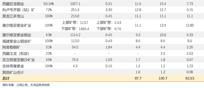 5)多宝山铜山铜矿:Ⅱ号矿体采矿工程建成达产后整体年产能有望提升至12万吨。