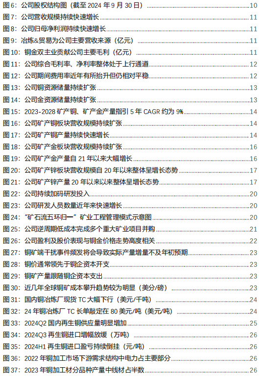 公司控股股东为上杭县财政局,旗下多家子公司板块分工明确。截至24Q3,公司控股股东闽西兴杭国有资产投资经营有限公司持股22.89%,上杭县财政局为公司实控人,前四大股东合计持股54.98%,股权结构清晰稳定。子公司方面,铜、金、铅锌、冶炼等业务板块清晰,子公司矿冶协同。