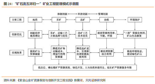 “科技创造紫金”。矿业竞争实质是成本与价格的竞争,决定性的因素是资源禀赋。同时现代矿业是高科技支撑的行业,科技创新在找矿勘察、低成本开发中起关键性作用。我们认为科技创新是紫金矿业的核心竞争力,“科技创造紫金”是公司成立30余年发展历程的真实写照,公司在地质勘查评价、开采技术、低品位难选冶资源综合回收利用、环保等方面具有行业领先的技术优势,同时具备丰富的实践经验。